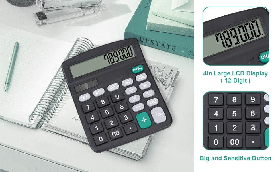 Con una pantalla LCD de 12 dígitos, su tamaño y peso son perfectos para llevarla a donde sea necesario.