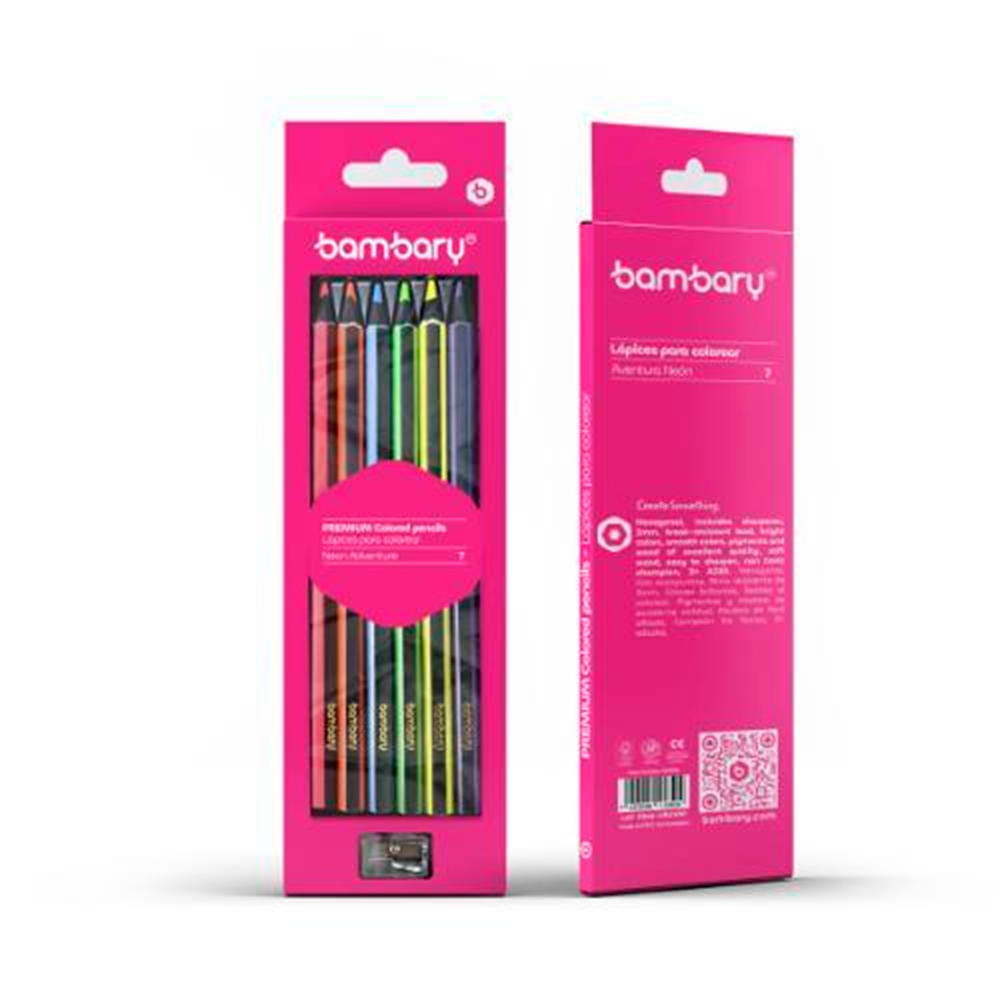 Lápices De Colores Neón Hexagonal De 7 X 3 Mm De 6 Und.